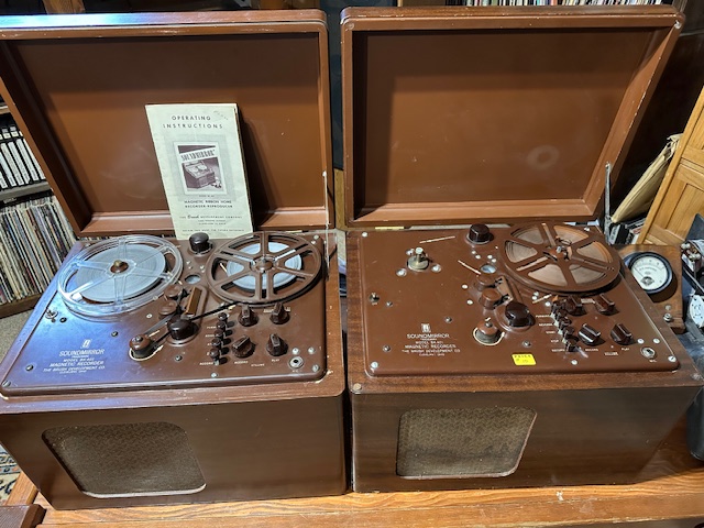 When a friend contacted me about seeing a Brush Soundmirror BK-401 at an estate sale for $10 I told him to buy it for me. It makes a nice addition to the one I already have, the one that came with the Paper Tape Archive. Here they are together, the new one on the right.