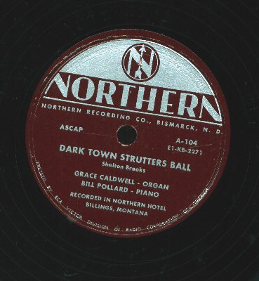 Grace Caldwell (organ) and Bill Pollard (piano) were the musical duo playing nightly at the Northern Hotel in Billings, Montana during the early 50s. They did release several recordings on 78 RPM for the Northern Recording Company in Bismark, North Dakota. You can view a label by clicking here. Selections on record included: